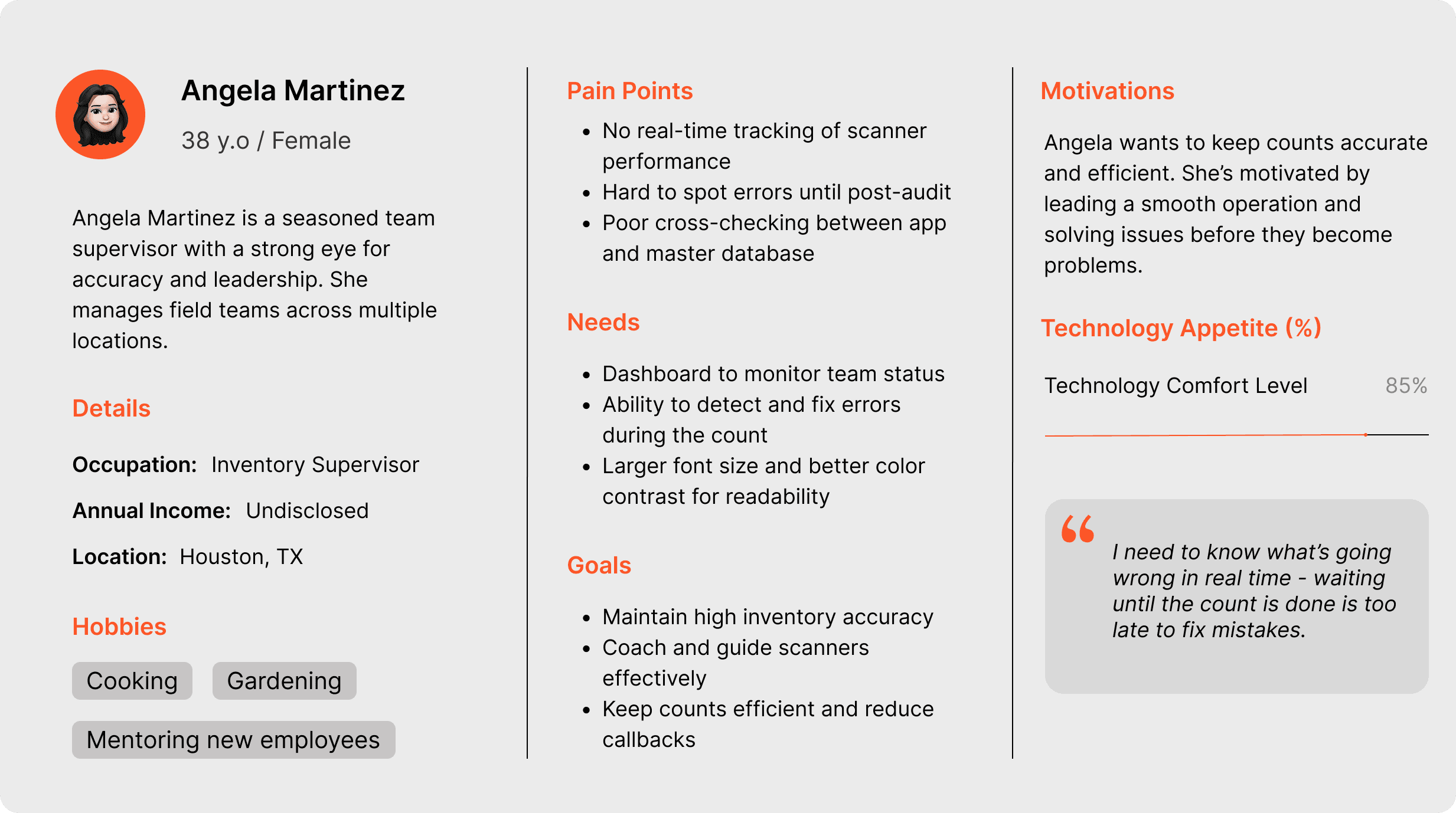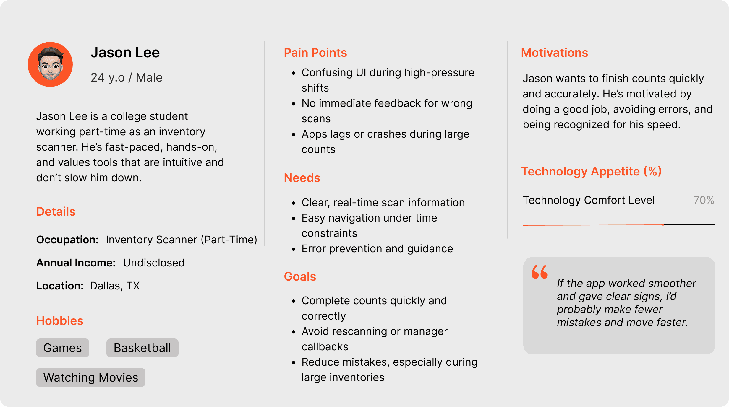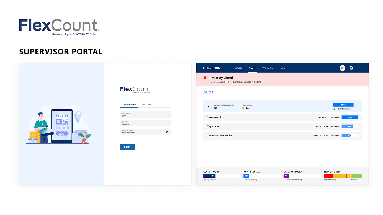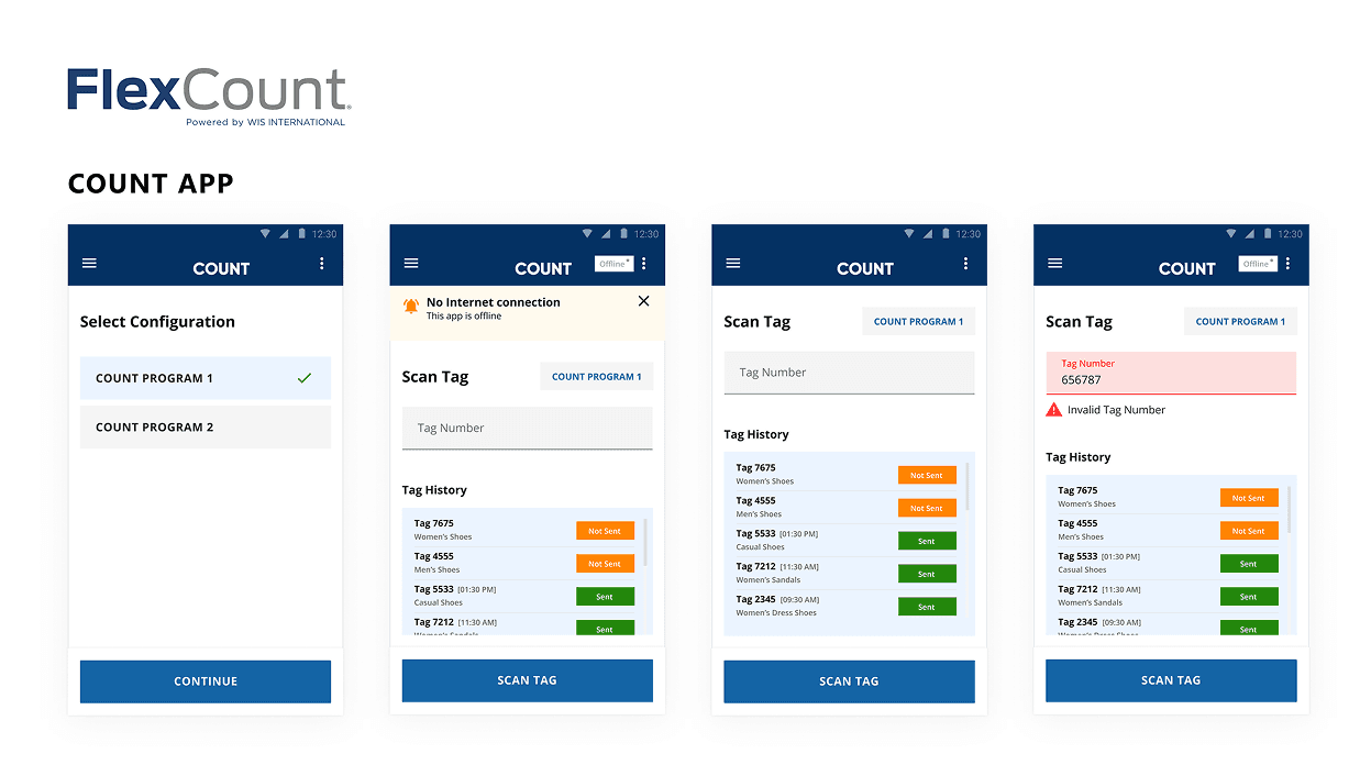 The Flex Count project focused on redesigning WIS International’s inventory scanning app to enhance usability for both scanners and supervisors. The redesign prioritized a more intuitive, responsive interface that supports the fast-paced demands of inventory management environments.